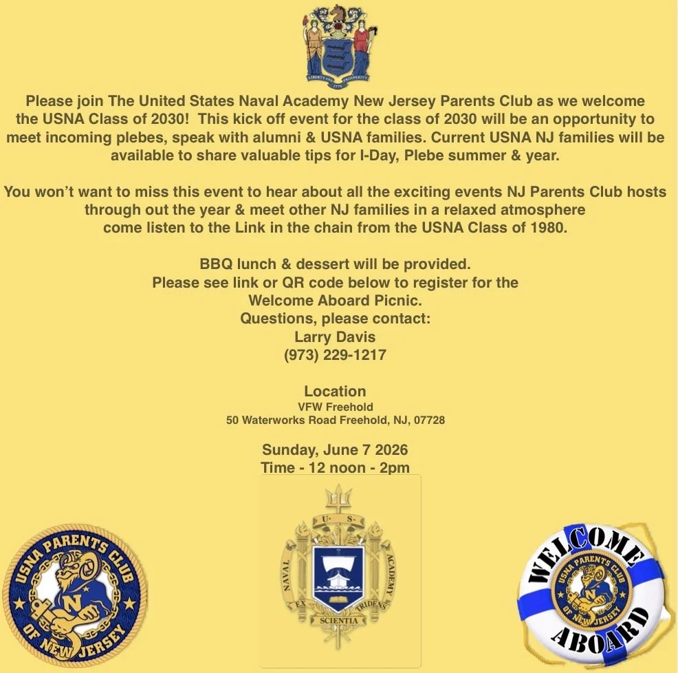 This kick off event for the USNA class of 2030 will be an opportunity to meet incoming plebes, speak with alumni & USNA families. Current USNA NJ families will be available to share valuable tips for I-Day, Plebe summer & beyond.